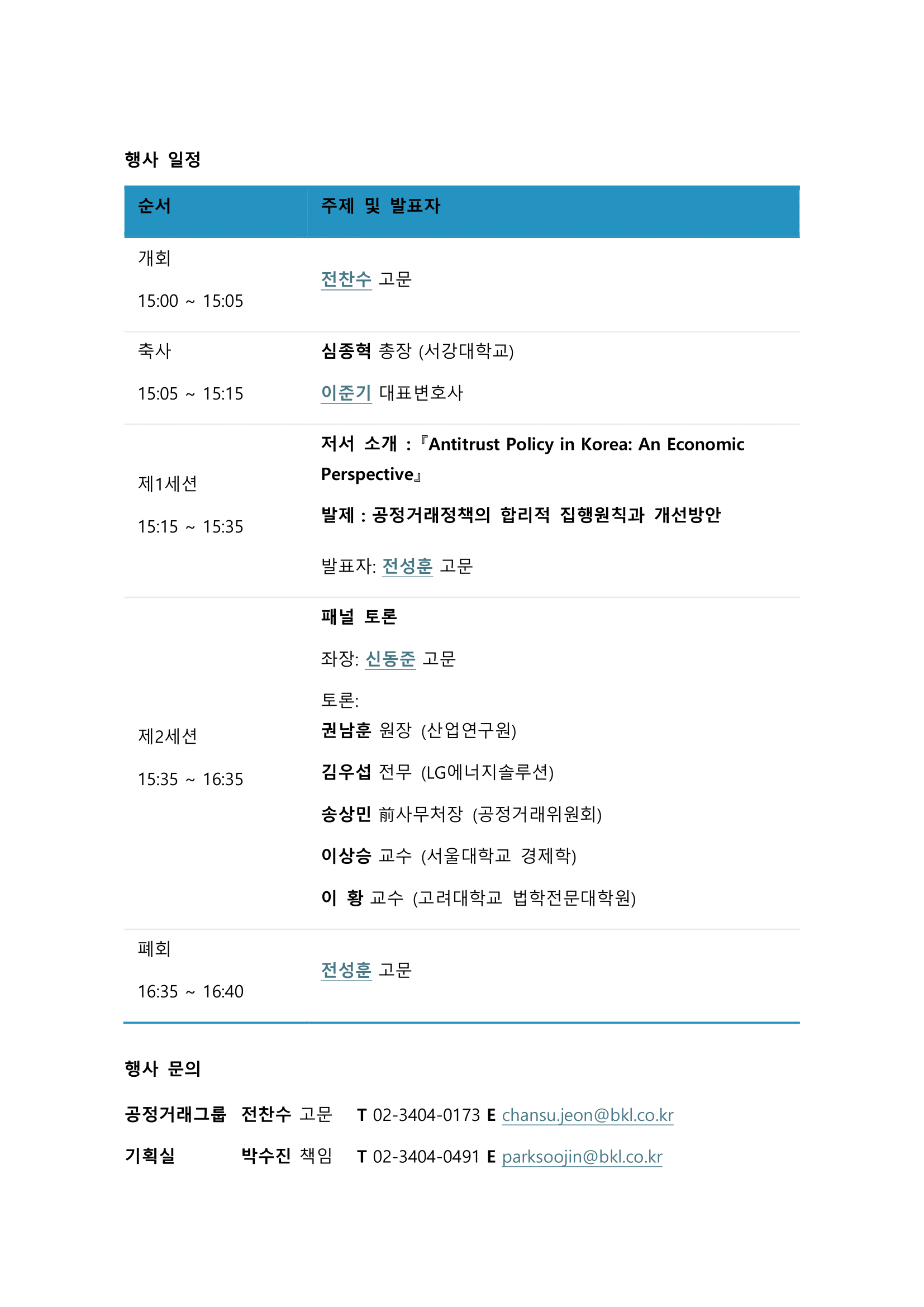 - 한사회 행사 및 세미나 관련 문의 : event@kica.bar