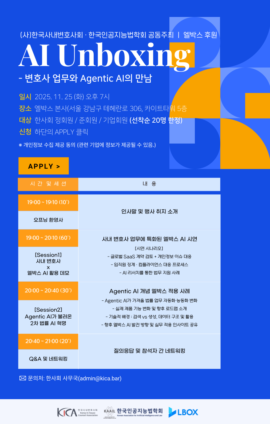 - 한사회 행사 및 세미나 관련 문의 : event@kica.bar