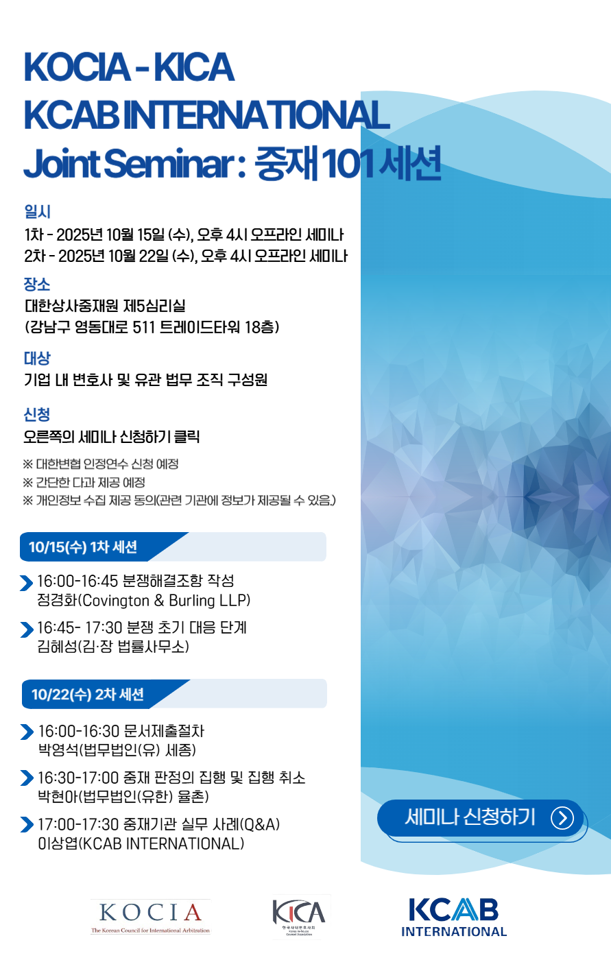 - 한사회 가입 및 외부 홍보 관련 문의 : admin@kica.bar